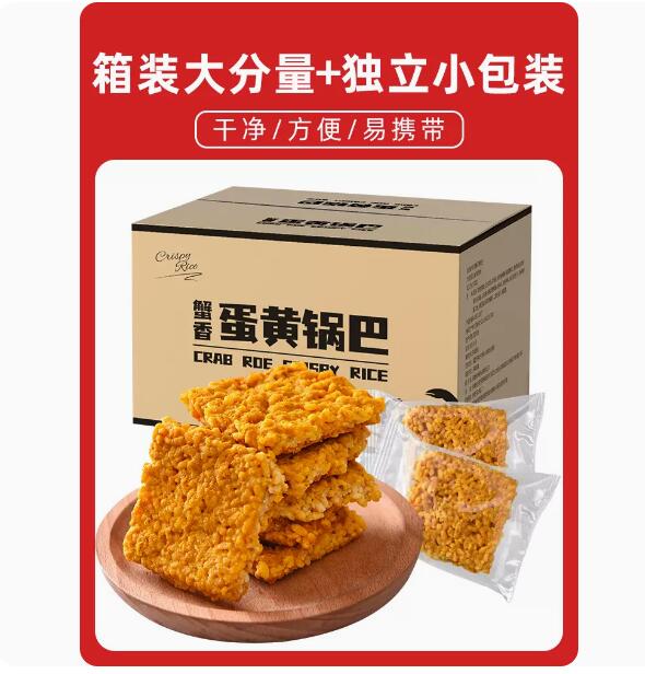 商品名称:网红蟹黄锅巴蟹香咸蛋黄锅巴糯米锅巴解馋爆款小吃包食品休闲零食