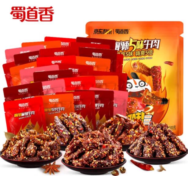 商品名称:蜀道香 川味嗨辣牛肉500g 5种口味 休闲零食大礼包